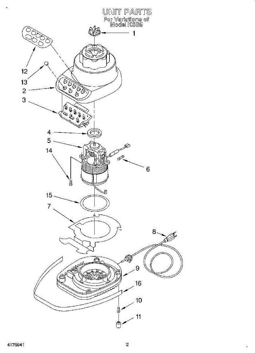 Parts for Kitchenaid KSB5BU0: 02 - Section Parts