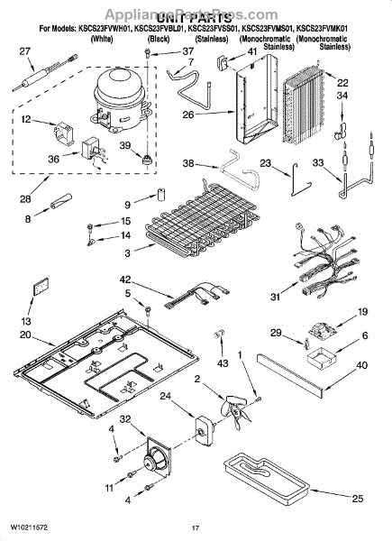 Parts for Kitchenaid KSCS23FVSS01: 11 - Unit Parts