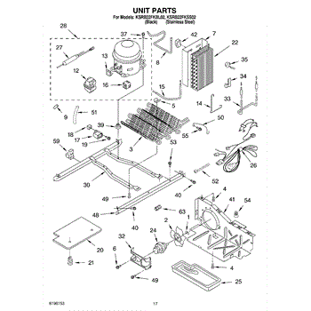 Refrigerator fan guard protects the evaporator or condenser fan from debris. Replace if cracked, broken, or missing to prevent fan damage. Verify fit by model number.