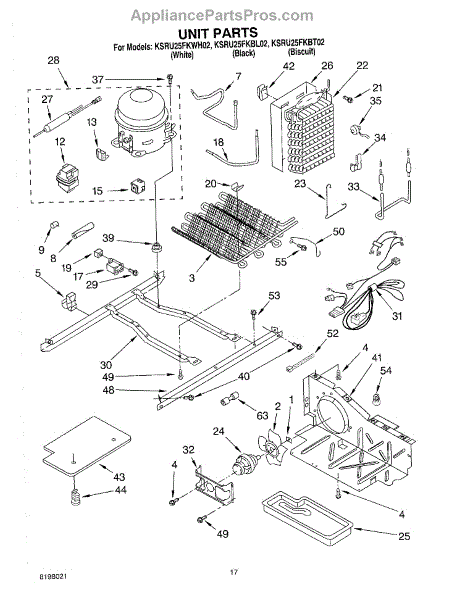 Parts for Kitchenaid KSRU25FKWH02: 11 - Unit Parts