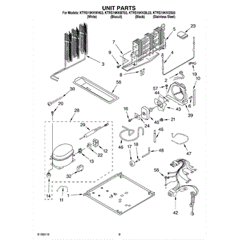 Secures the compressor to the refrigerator frame. Replace if strap is cracked, broken, or missing to properly mount and stabilize the compressor unit.