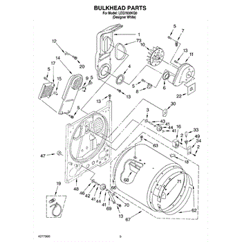 Replacement bulkhead that supports the front of the dryer drum and helps maintain correct drum alignment and airflow. Restores stable drum rotation and reduces rubbing, noise, and air leaks for more reliable drying performance. What it does: