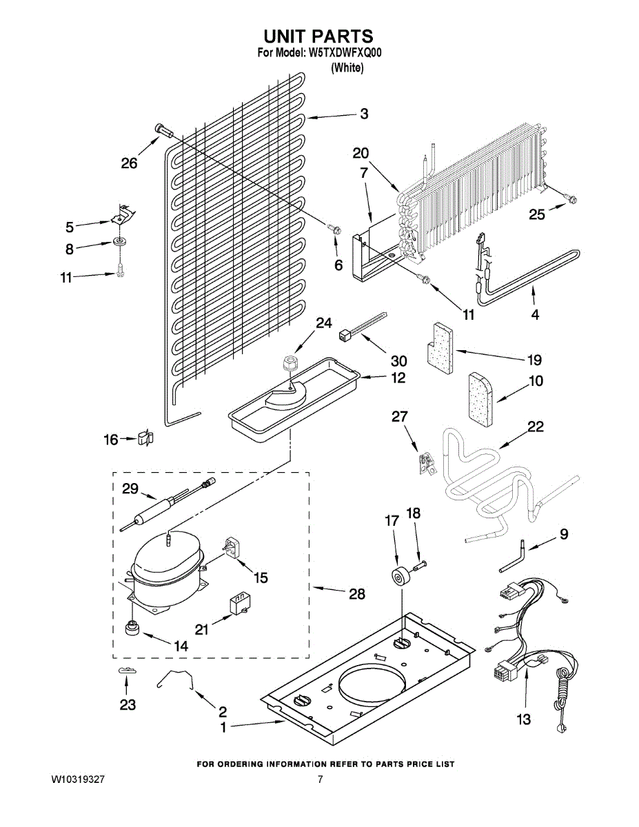 Collects defrost and condensation water from the evaporator coil. Replace if cracked, warped, or leaking to prevent water damage and ice buildup issues.