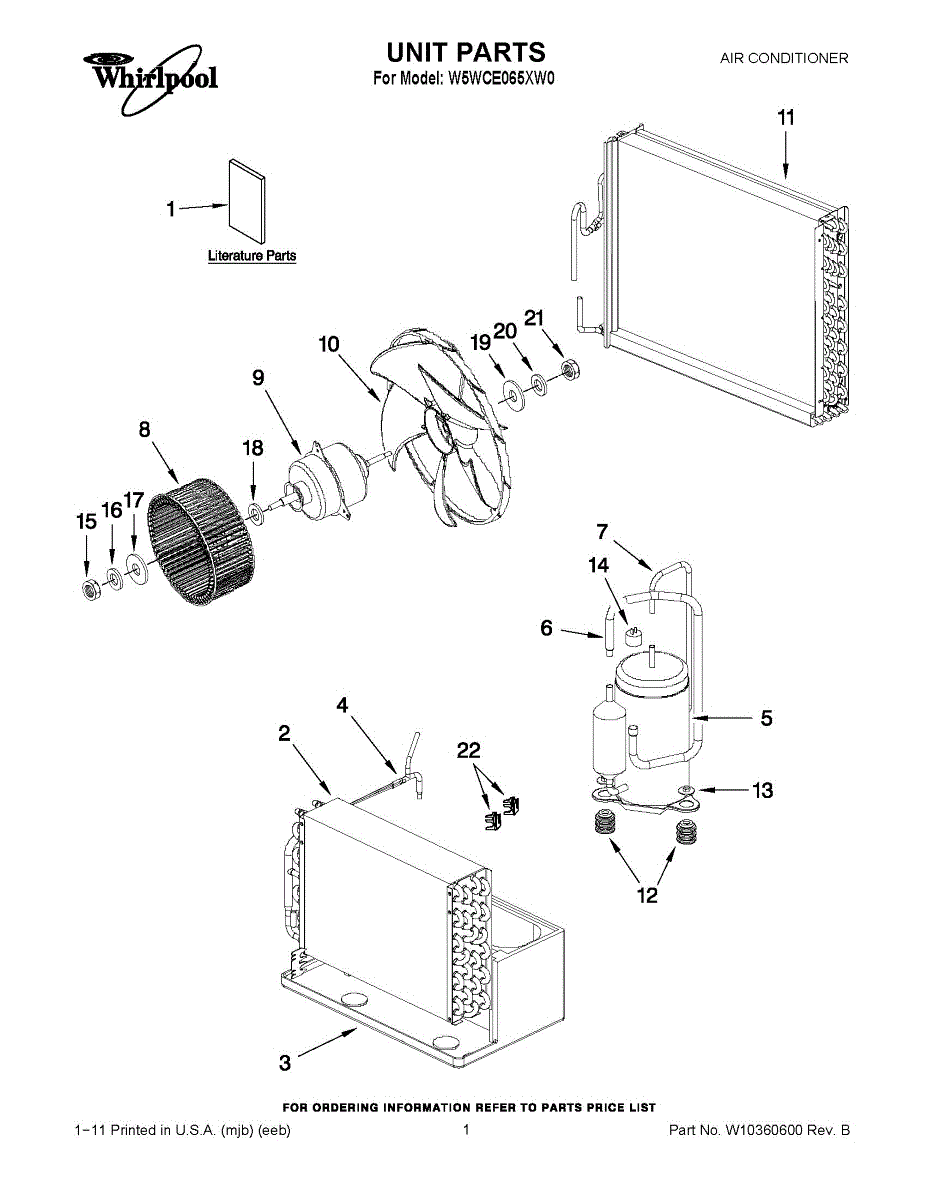 Parts for Whirlpool W5WCE065XW0: 01 - Unit Parts