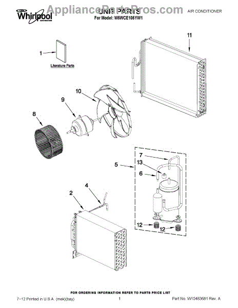 Parts for Whirlpool W5WCE105YW1: 01 - Unit Parts