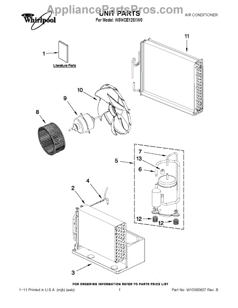 Parts for Whirlpool W5WCE128XW0: 01 - Unit Parts