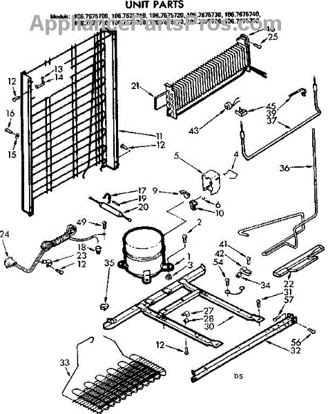 Parts for Kenmore 106.7675700 (1067675700, 106 7675700): Unit Parts