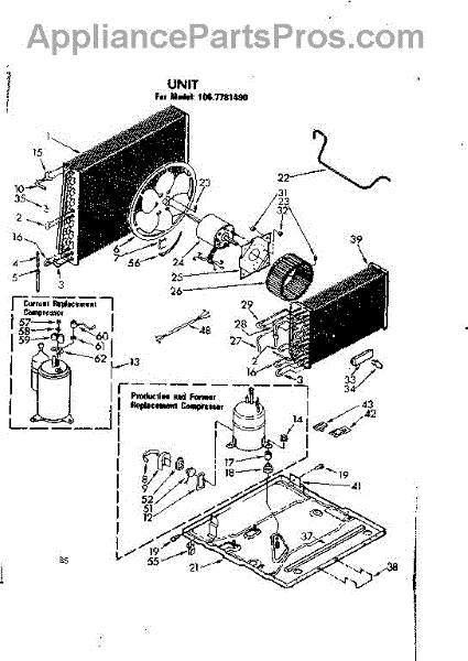 Parts for Kenmore 106.7781490 (1067781490, 106 7781490): Unit Parts