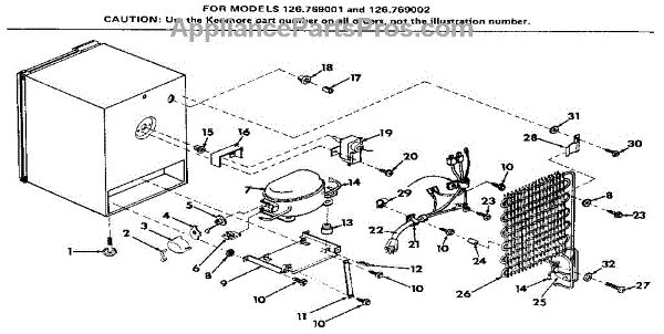 Parts for Kenmore 126.769001 (126769001, 126 769001): Unit Parts
