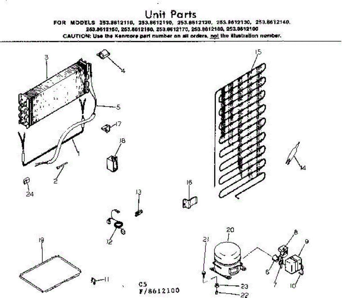 Parts for Kenmore 253.8612160 (2538612160, 253 8612160): Unit Parts