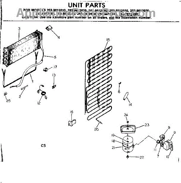 Parts for Kenmore 253.8612650 (2538612650, 253 8612650): Unit Parts