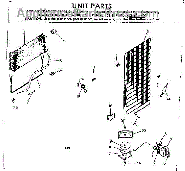 Parts for Kenmore 253.8614400 (2538614400, 253 8614400): Unit Parts