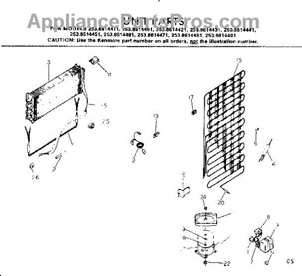 Parts for Kenmore 253.8614411 (2538614411, 253 8614411): Unit Parts