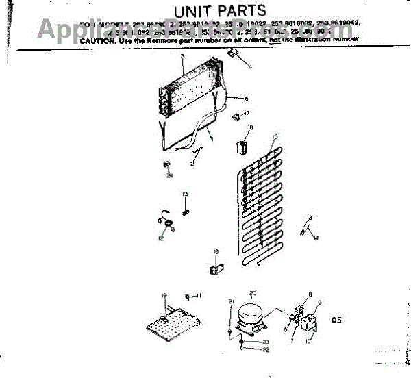 Parts for Kenmore 253.8619072 (2538619072, 253 8619072): Unit Parts