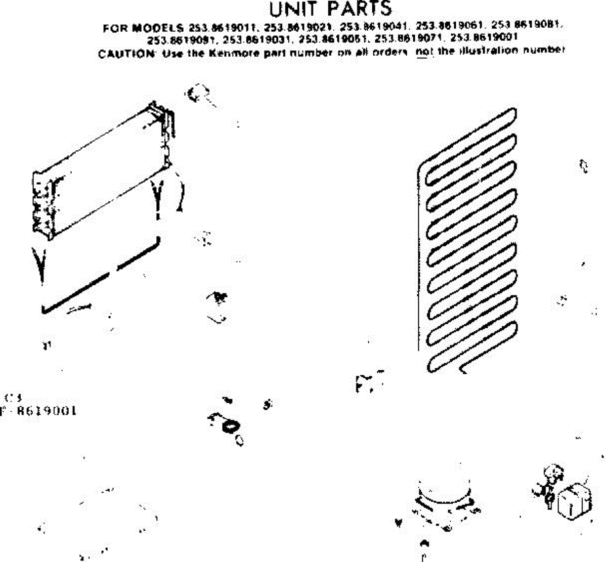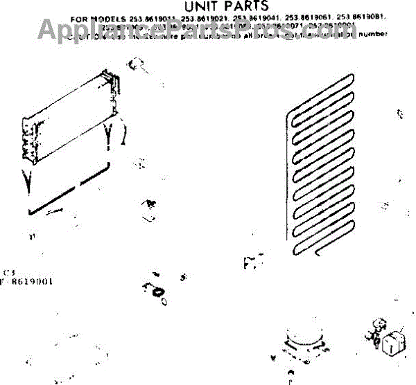 Parts for Kenmore 253.8619091 (2538619091, 253 8619091): Unit Parts