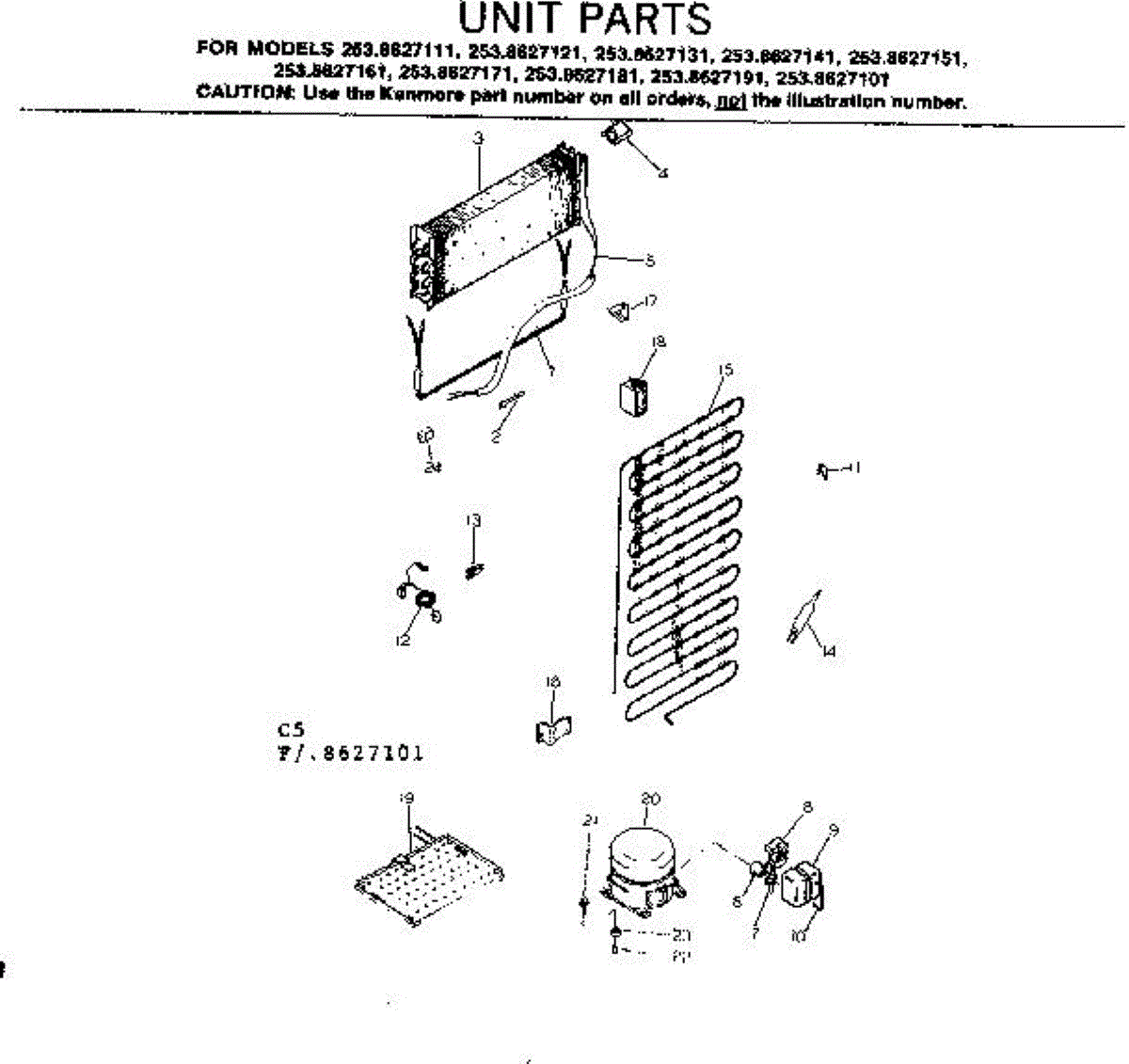 Parts for Kenmore 253.8627181 (2538627181, 253 8627181): Unit Parts