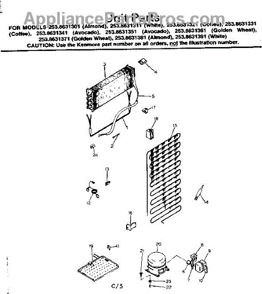 Parts for Kenmore 253.8631361 (2538631361, 253 8631361): Unit Parts
