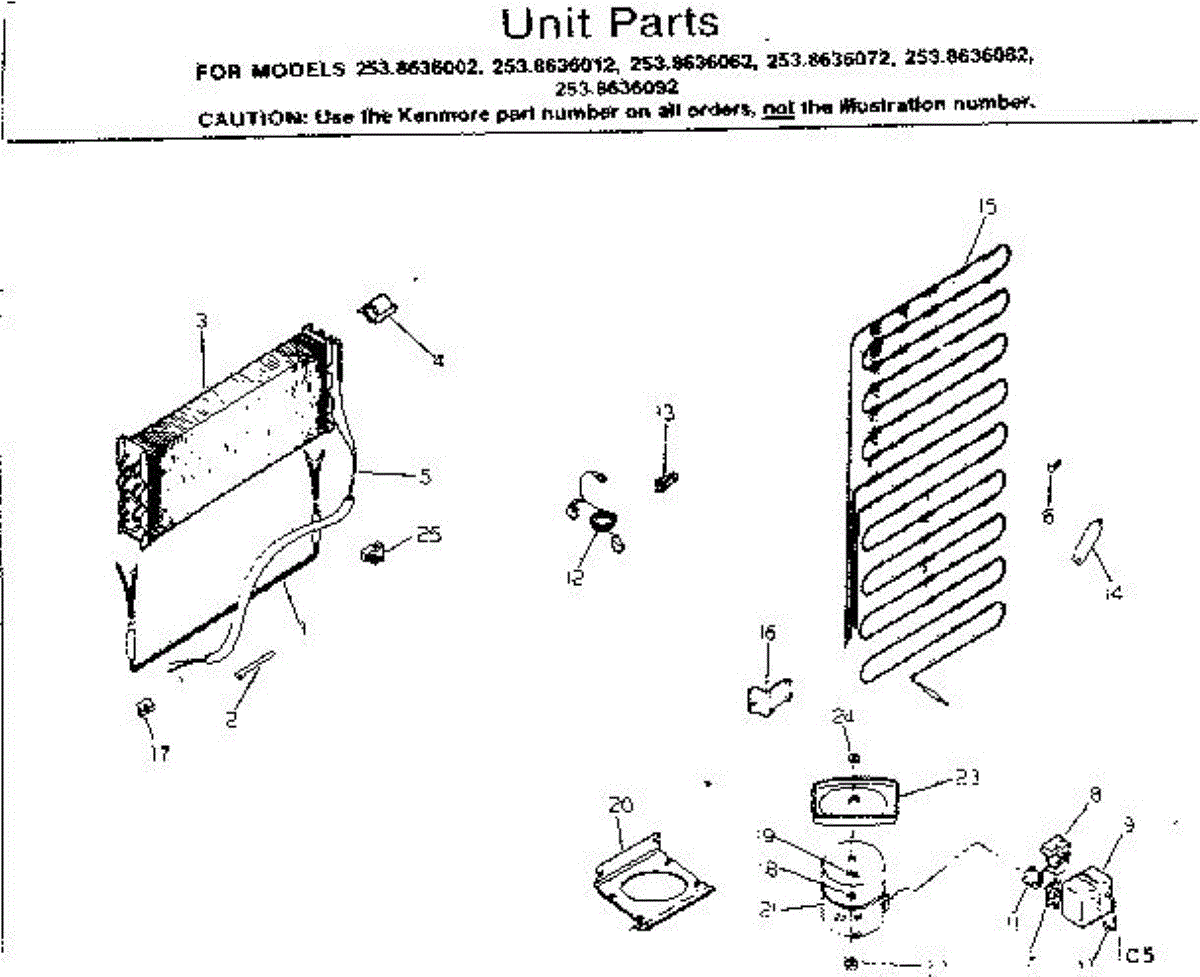 Parts for Kenmore 253.8636082 (2538636082, 253 8636082): Unit Parts