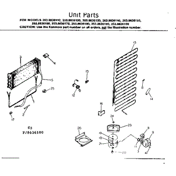 Parts for Kenmore 253.8636100 (2538636100, 253 8636100): Unit Parts
