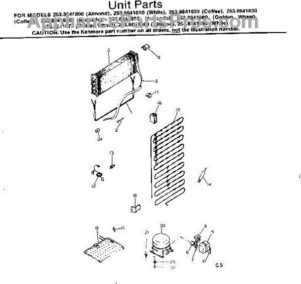 Parts for Kenmore 253.8641850 (2538641850, 253 8641850): Unit Parts