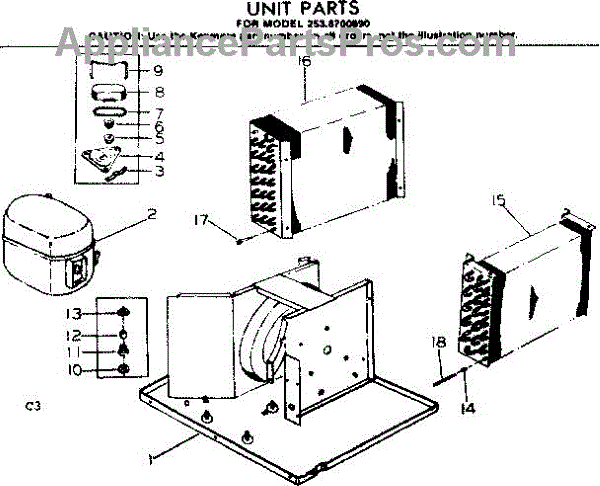 Parts for Kenmore 253.8700890 (2538700890, 253 8700890): Unit Parts