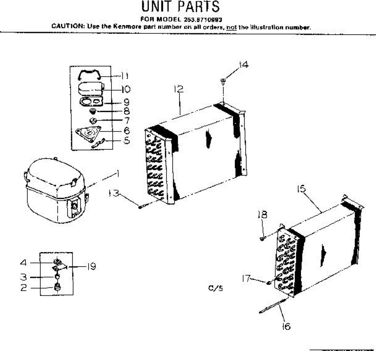 Parts for Kenmore 253.8710993 (2538710993, 253 8710993): Unit Parts