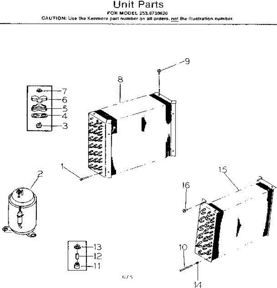 Parts for Kenmore 253.8730620 (2538730620, 253 8730620): Unit Parts