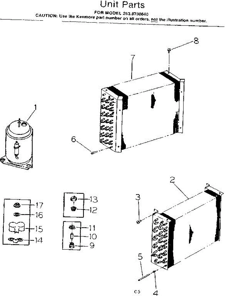 Parts for Kenmore 253.8730840 (2538730840, 253 8730840): Unit Parts