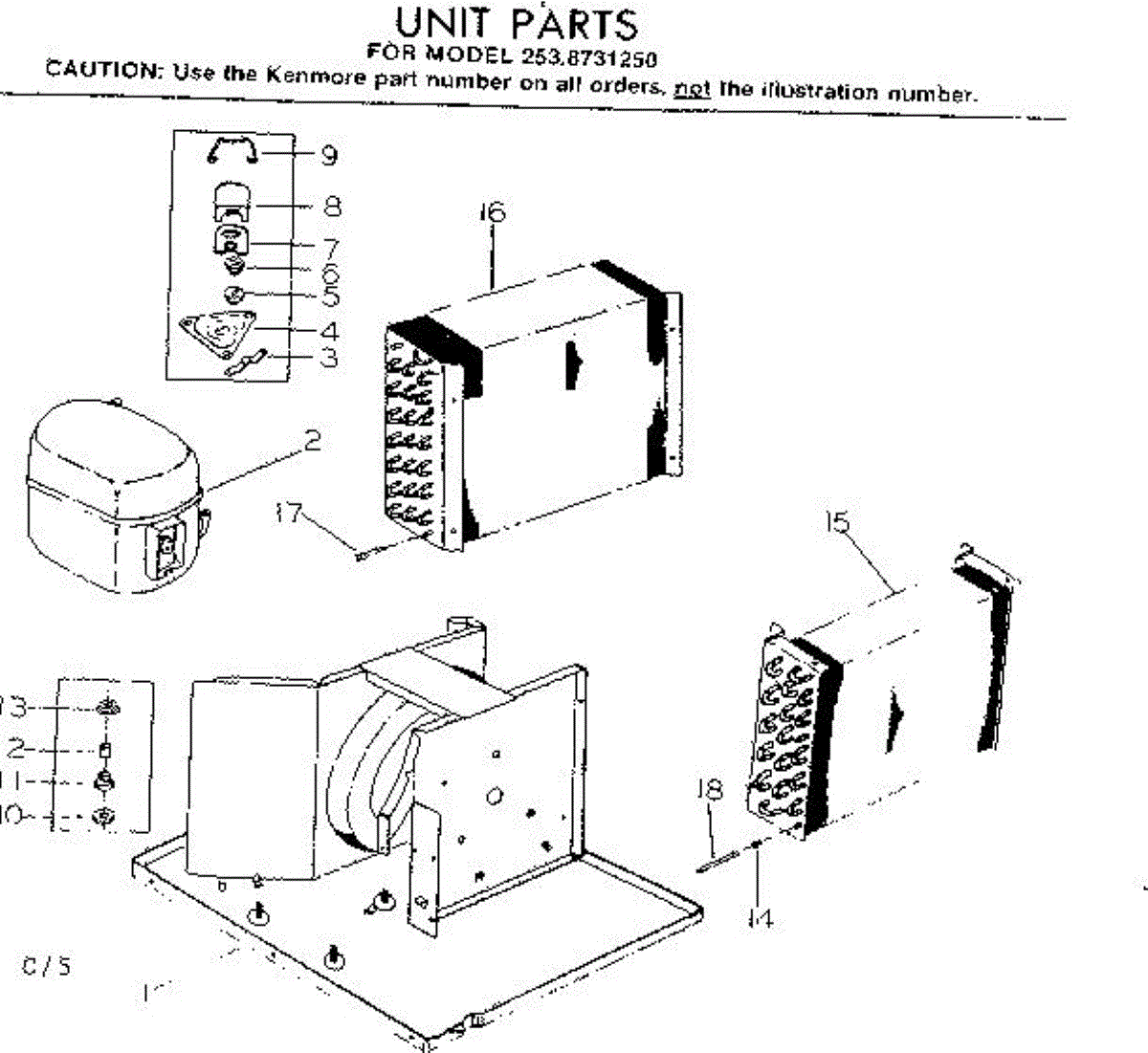 Parts for Kenmore 253.8731250 (2538731250, 253 8731250): Unit Parts