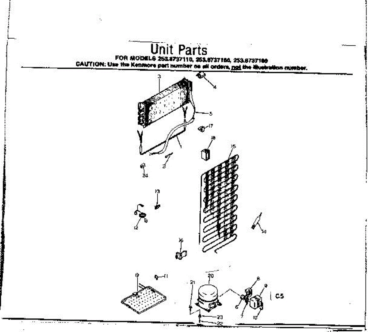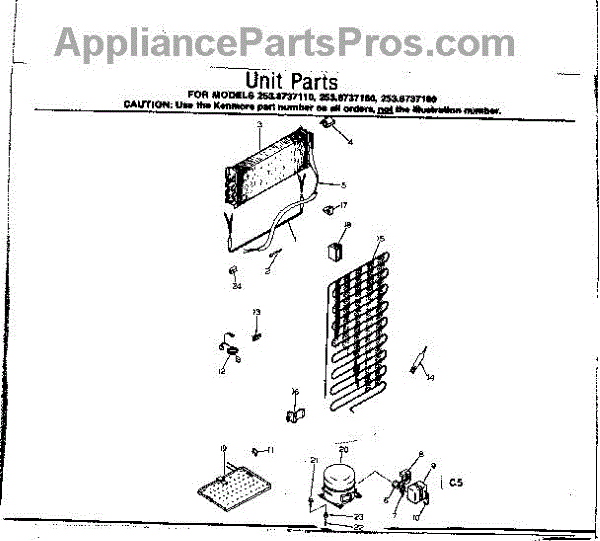Parts for Kenmore 253.8737180 (2538737180, 253 8737180): Unit Parts