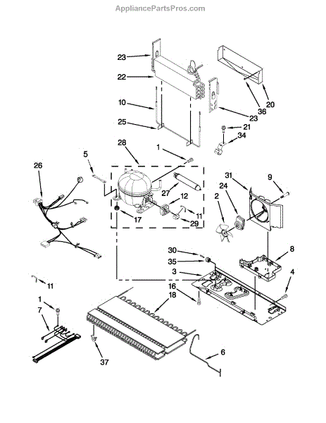 • Draws room air through the condenser coil and over the compressor to dissipate heat