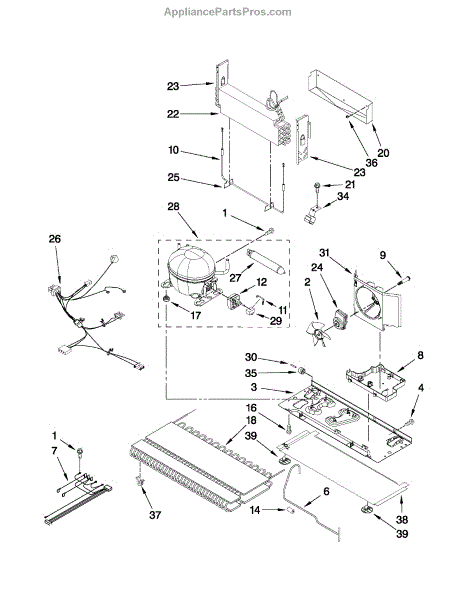 • Draws room air through the condenser coil and over the compressor to dissipate heat