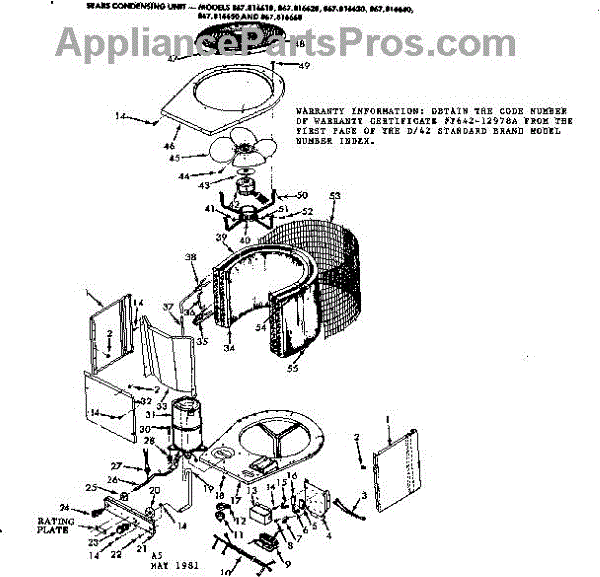 Parts for Kenmore 867.816650 (867816650, 867 816650): Unit Parts