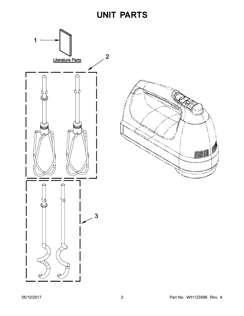 Replacement beater attachment for hand mixers. Installs on the mixer shaft for blending and mixing tasks. Needed when original is bent, damaged, or lost.