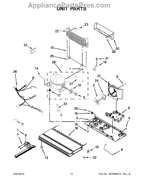 The Drip Pan is an OEM part for Whirlpool refrigerators. Located beneath the refrigerator, it collects and holds water that drips from the defrost system, preventing it from leaking onto the floor.