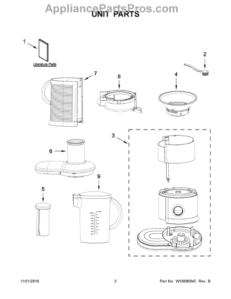Parts for Kitchenaid KVJ0333WH1: 02 - Unit Parts