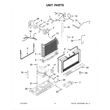 The Evaporator Coil is an OEM part for Whirlpool refrigerators. It is responsible for absorbing heat from the refrigerator interior as refrigerant passes through its fine tubes and fins. Cool air is then circulated through convection to maintain consistent temperatures.