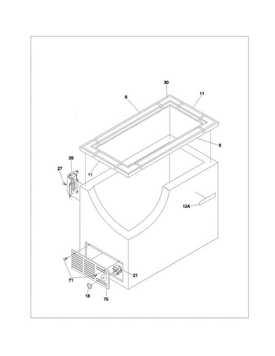 Nameplate frame that surrounds and secures the rating plate on your freezer. Replace this trim piece if cracked, broken, or missing to restore appearance.