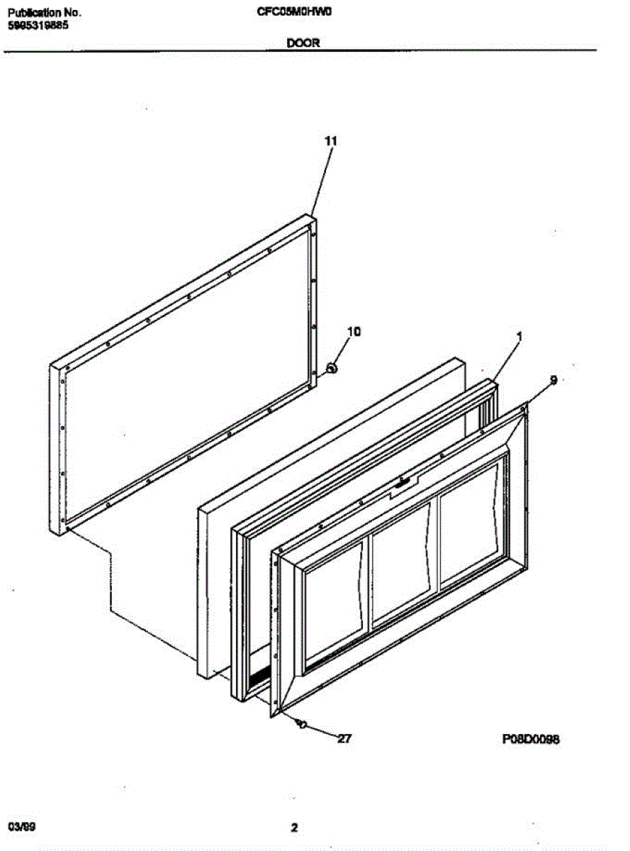 White outer door panel for chest freezers. Replaces cracked, damaged, or discolored exterior lid panels. Restores appearance and structural integrity.
