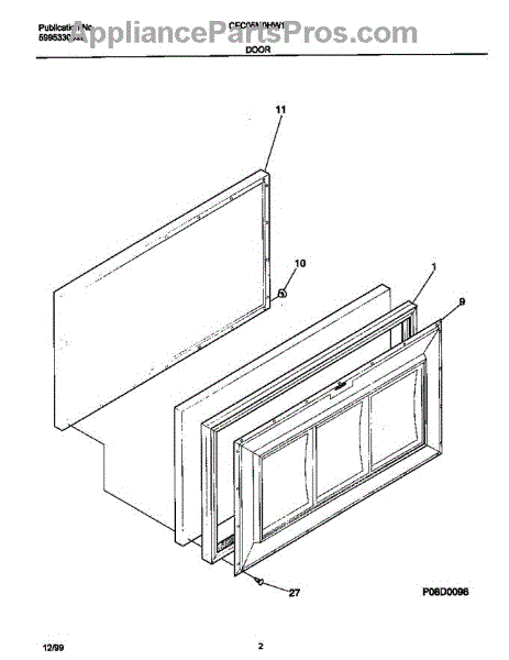 White outer door panel for chest freezers. Replaces cracked, damaged, or discolored exterior lid panels. Restores appearance and structural integrity.