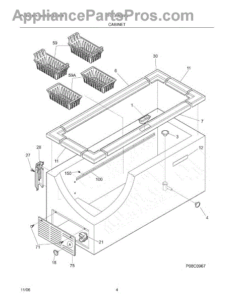 Lower basket organizes items in the bottom of your freezer. Replace a bent, broken, or missing basket to restore tidy storage and easier access to frozen food.