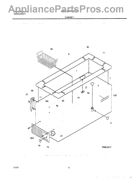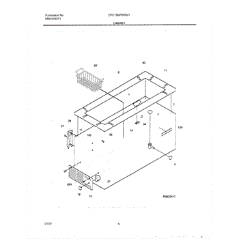 White access panel for chest and freestanding freezers. Covers internal components and provides service access. Replace if cracked, discolored, or missing.