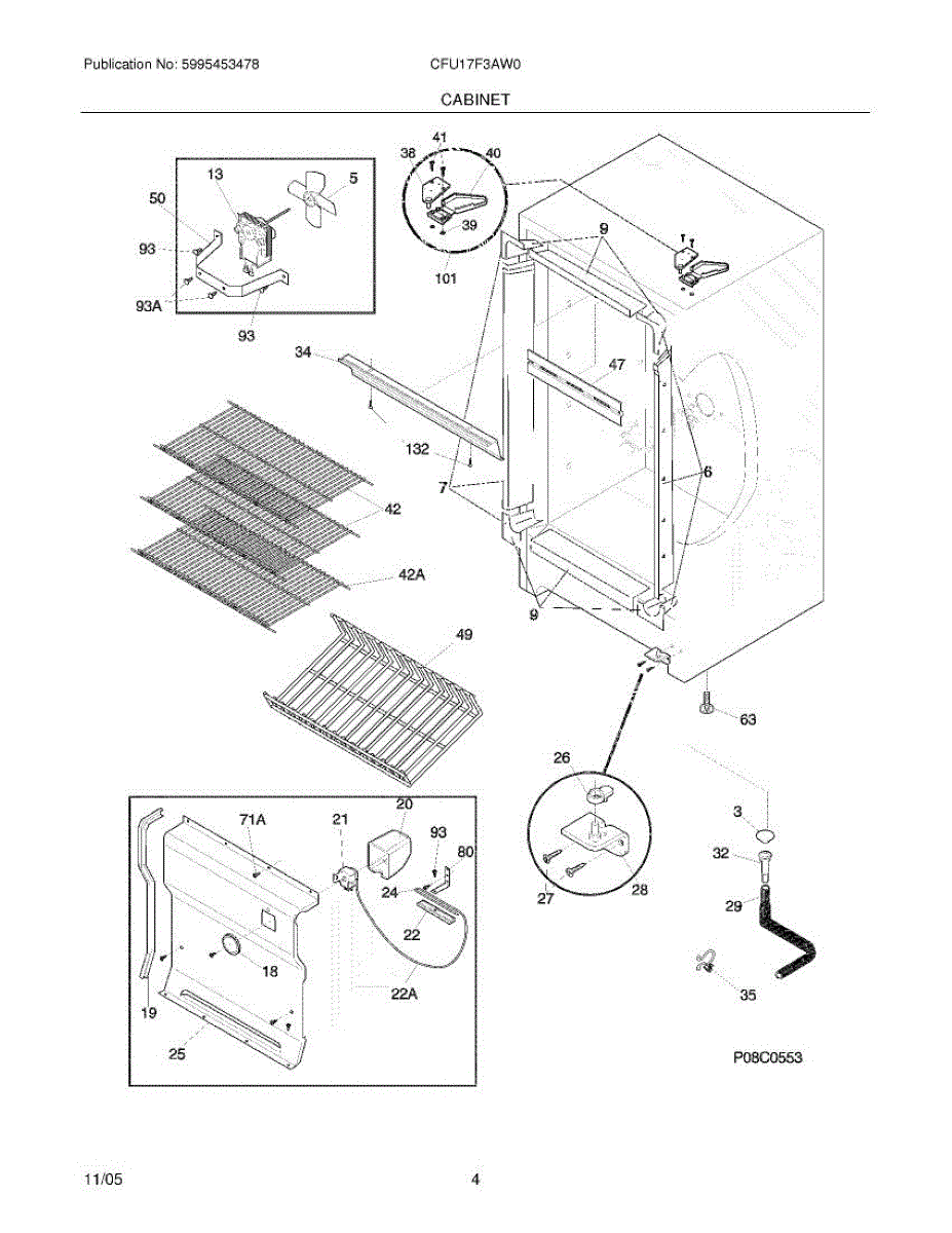 Foam insulation sleeve that wraps around the defrost drain tube. Replace if worn, missing, or damaged to prevent condensation and maintain proper insulation.
