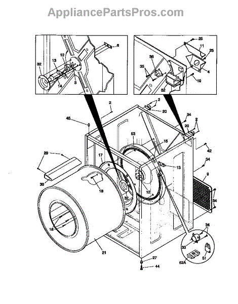 The Drum Bearing Bracket is an OEM replacement part for Frigidaire dryers. It holds and supports the drum bearing, which allows the dryer drum to spin smoothly during the tumbling and drying cycle. Causes of failure can be cracking or breaking of the bracket over time due to constant use and stress. Improper installation that puts strain on the bracket may also lead to issues. Symptoms of a bad drum bearing bracket include: