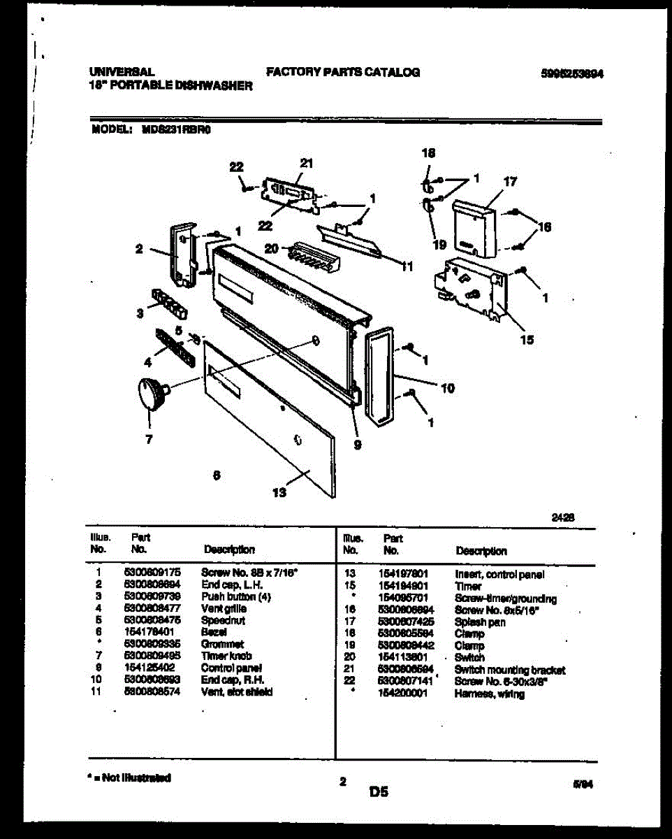 Parts for Frigidaire MDS231RBR0: 02 - Console And Control Parts