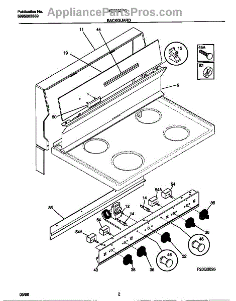 Parts for Frigidaire MEF303PCWE: 02 - Backguard Parts
