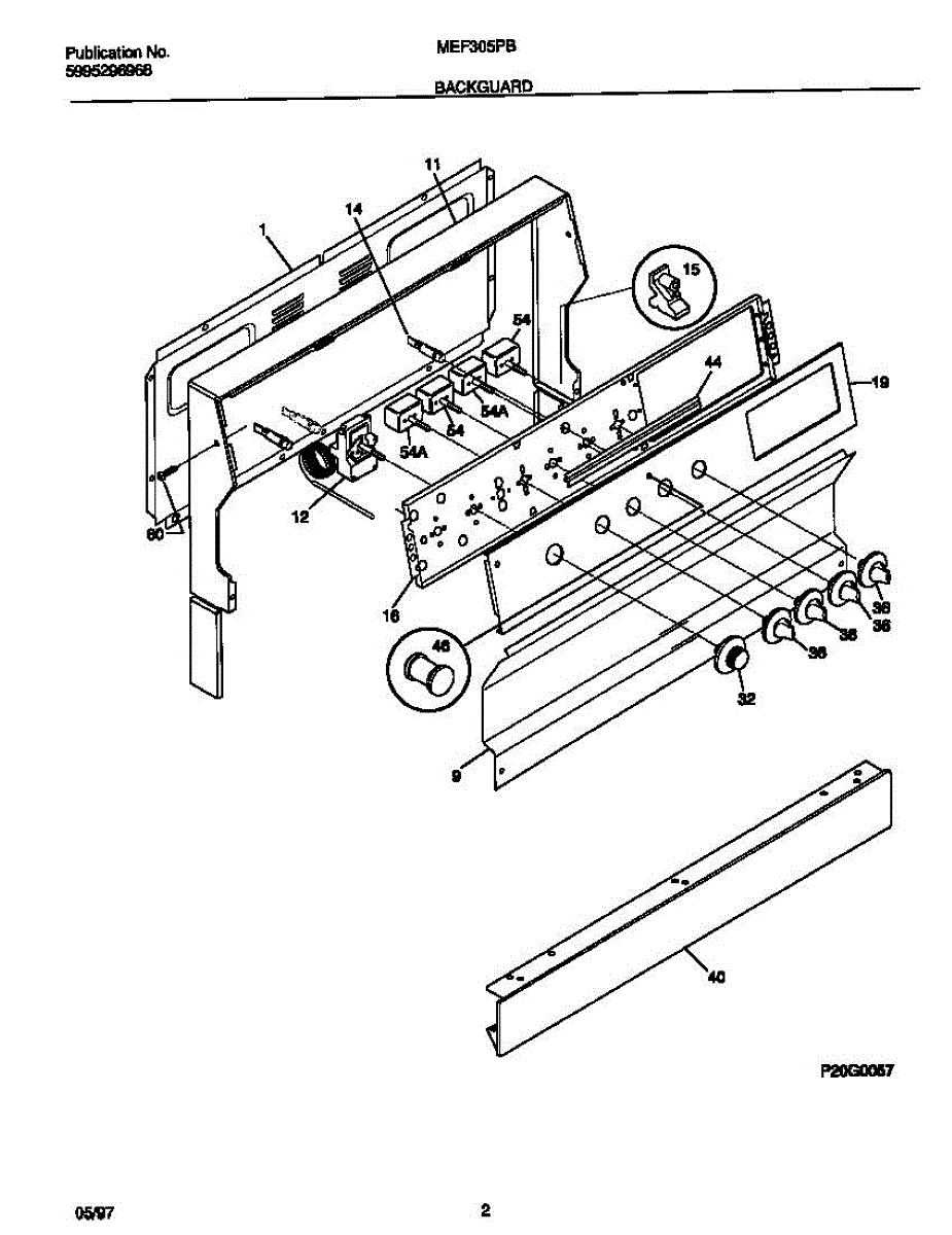 Parts for Frigidaire MEF305PBDF: 02 - Backguard Parts
