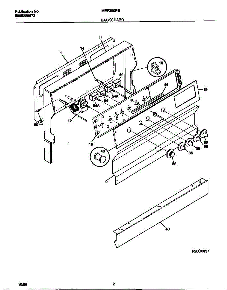 Parts for Frigidaire MEF305PBWE: 02 - Backguard Parts