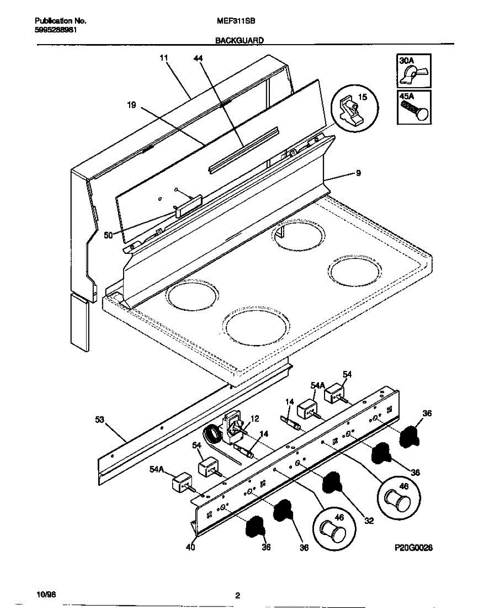 Parts for Frigidaire MEF311SBDF: 02 - Backguard Parts