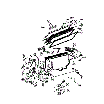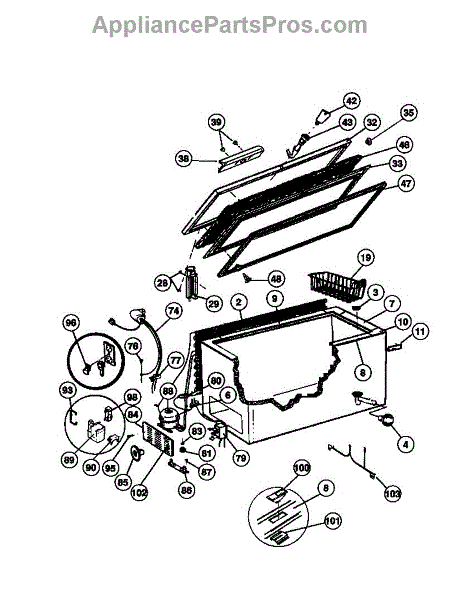 Replacement hinge assembly for chest freezer lids. Provides pivot support for smooth opening and secure closing. Replace if cracked, broken, or worn.